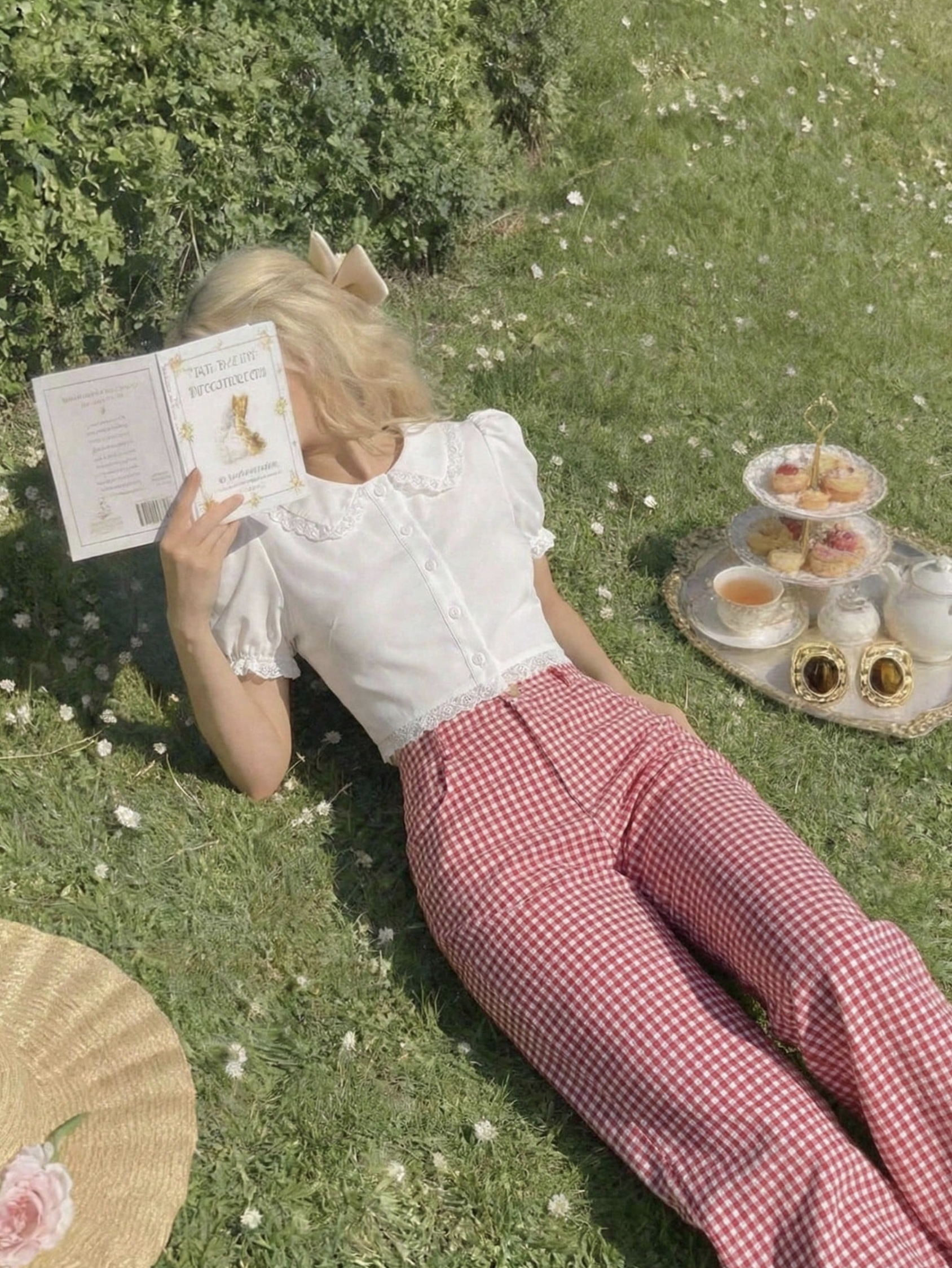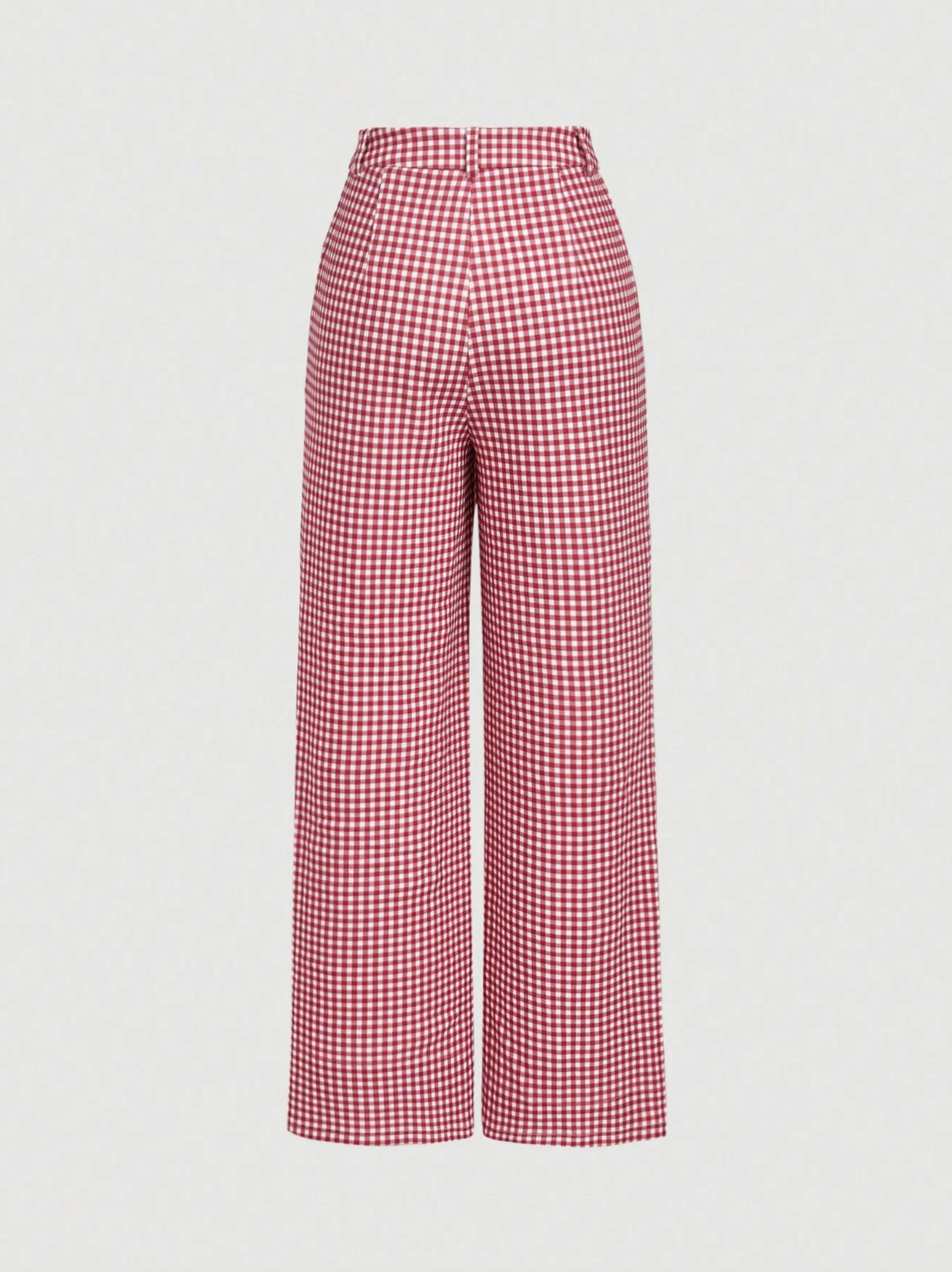 Gillian Red Check Cotton Straight Fit Trousers