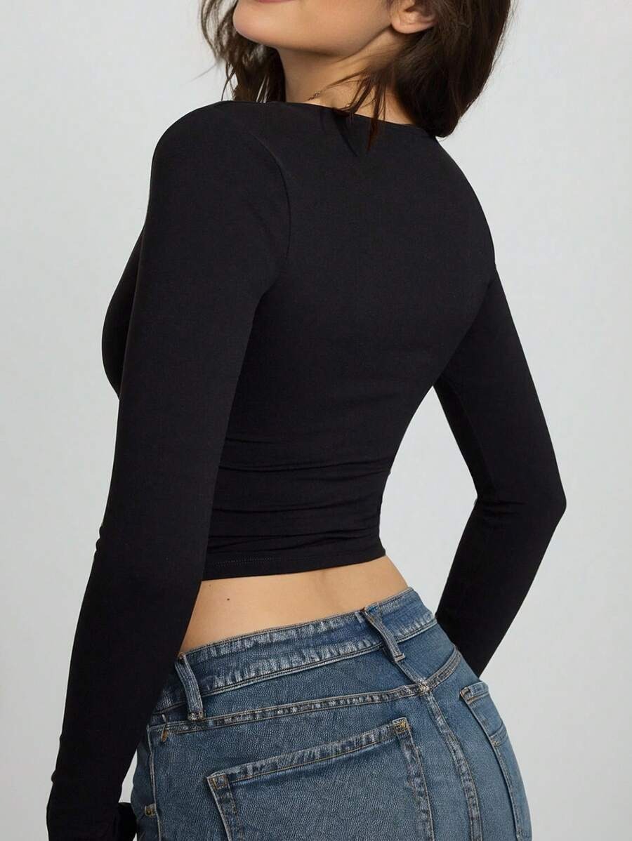 Be the first to review “Jessica Black V Neck Full Sleeves Crop Top”