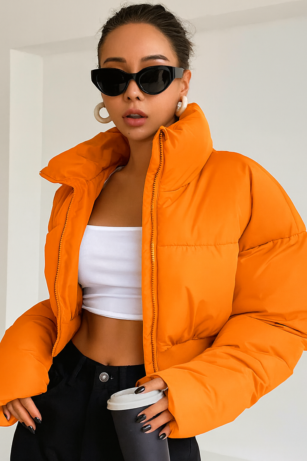 Puffer jackets are on trend this season and we love this style doll. Featuring a Lavender & Orange color with long sleeves, a zip fastening, double front pockets, a cropped length. Team this with your off-duty wardrobe pieces for a vibe we are loving.