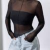 Be the first to review “Niha Mesh Sleeves Crop Top In Black | White”