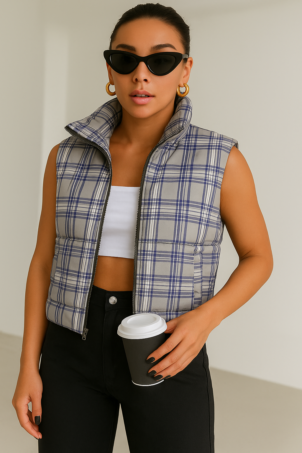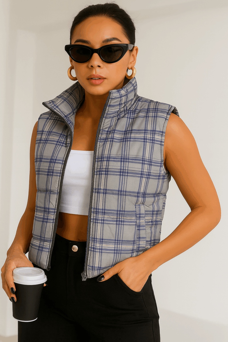 Add some layers to your look this season with this gilet. Featuring a grey check with a puffer design and a sleeveless fit, we’re obsessed. Wear over your outfit of the day to complete the look.