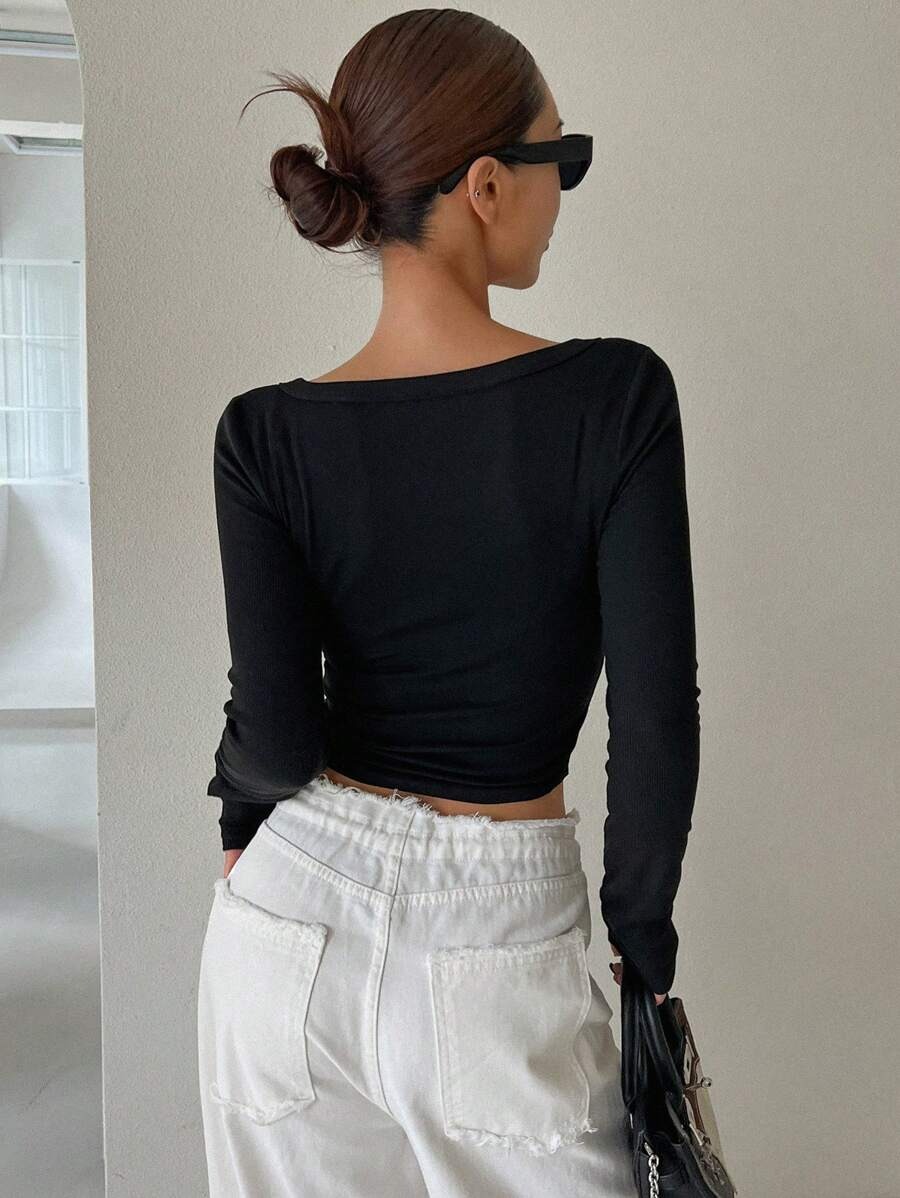 Be the first to review “Valencia Black Buttoned V Neck Full Sleeves Top”
